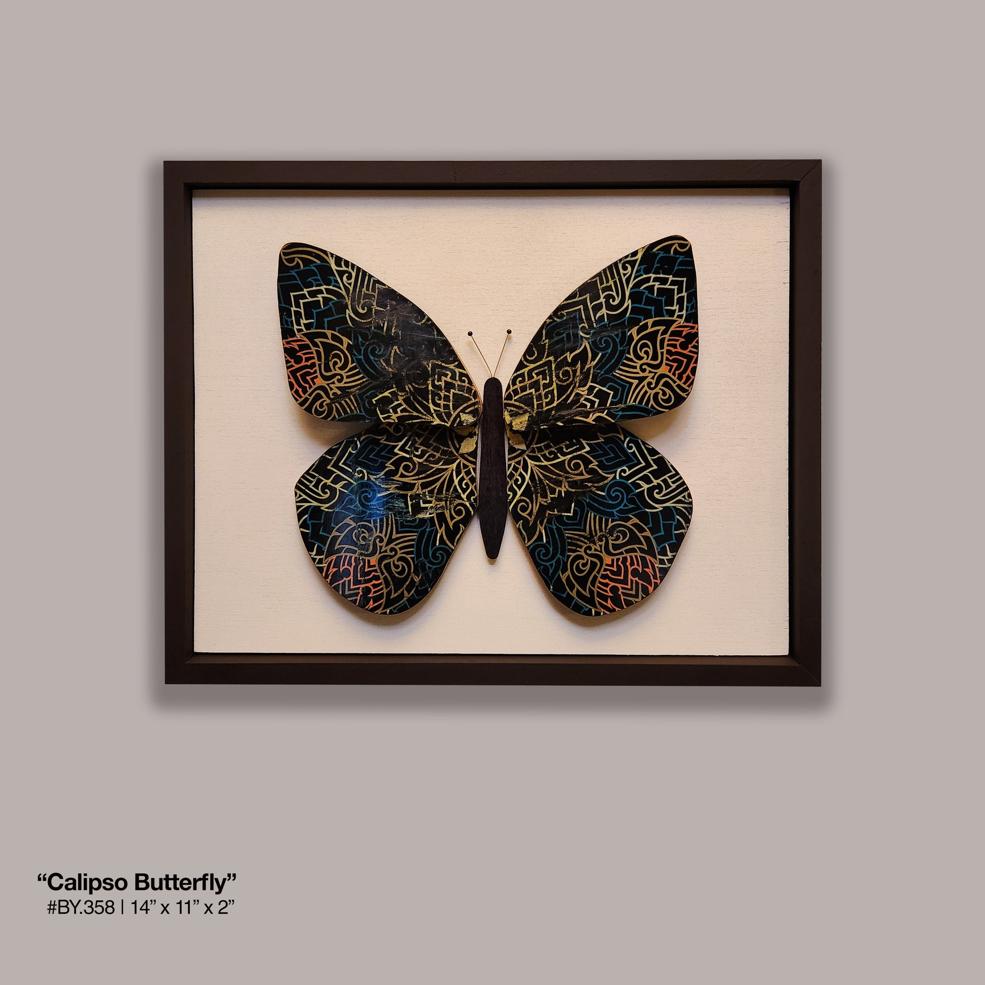Zero-Waste art piece made from pieces of a recycled skateboard and other wood that would typically be headed to a landfill. Custom, shadowbox frame using Brown-Painted pine box. Size is noted on the photo.